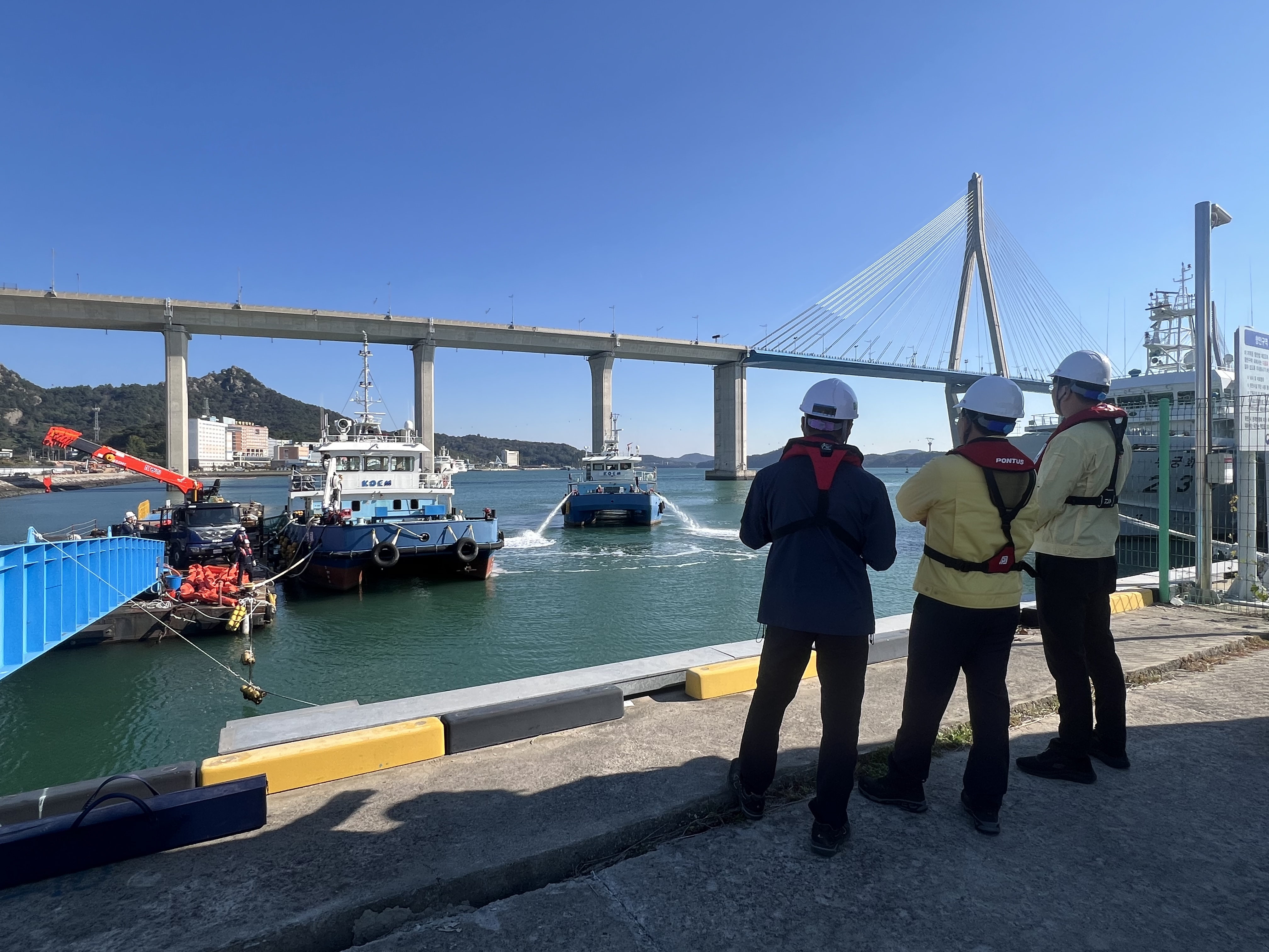 목포해수청(청장 김태환)은 청항선 전용부두에서 유관기관과 합동으로 ‘2025년 안전한국훈련’을 실시했다. 방제 자재 교육에 이어 유류 수급 작업 중 호스 파열로 인한 유류유출·화재 발생을 가정한 현장훈련을 진행해 사고 대응능력과 각 기관별 임무와 역할을 점검했다.(´25. 10. 28.)  |