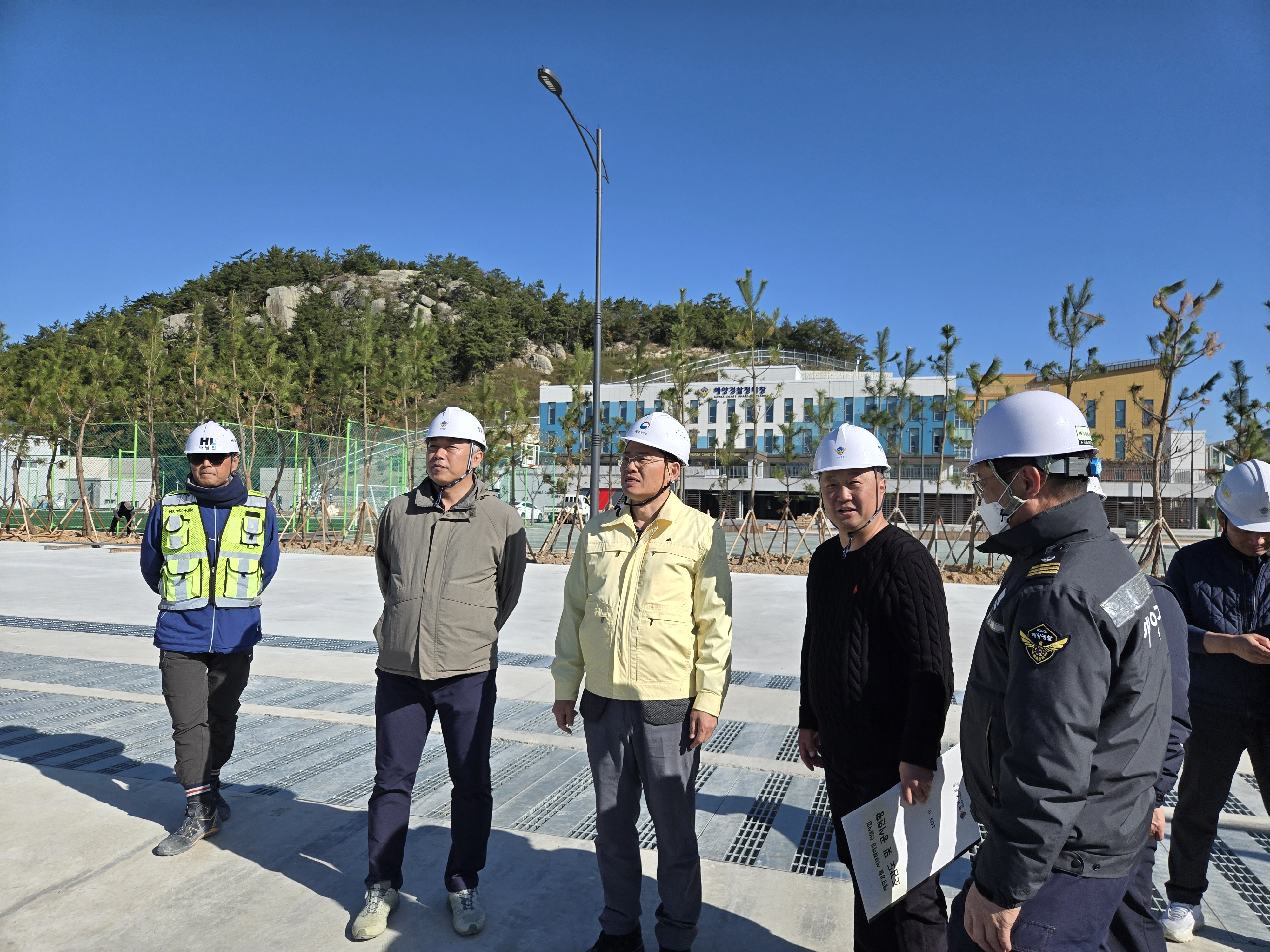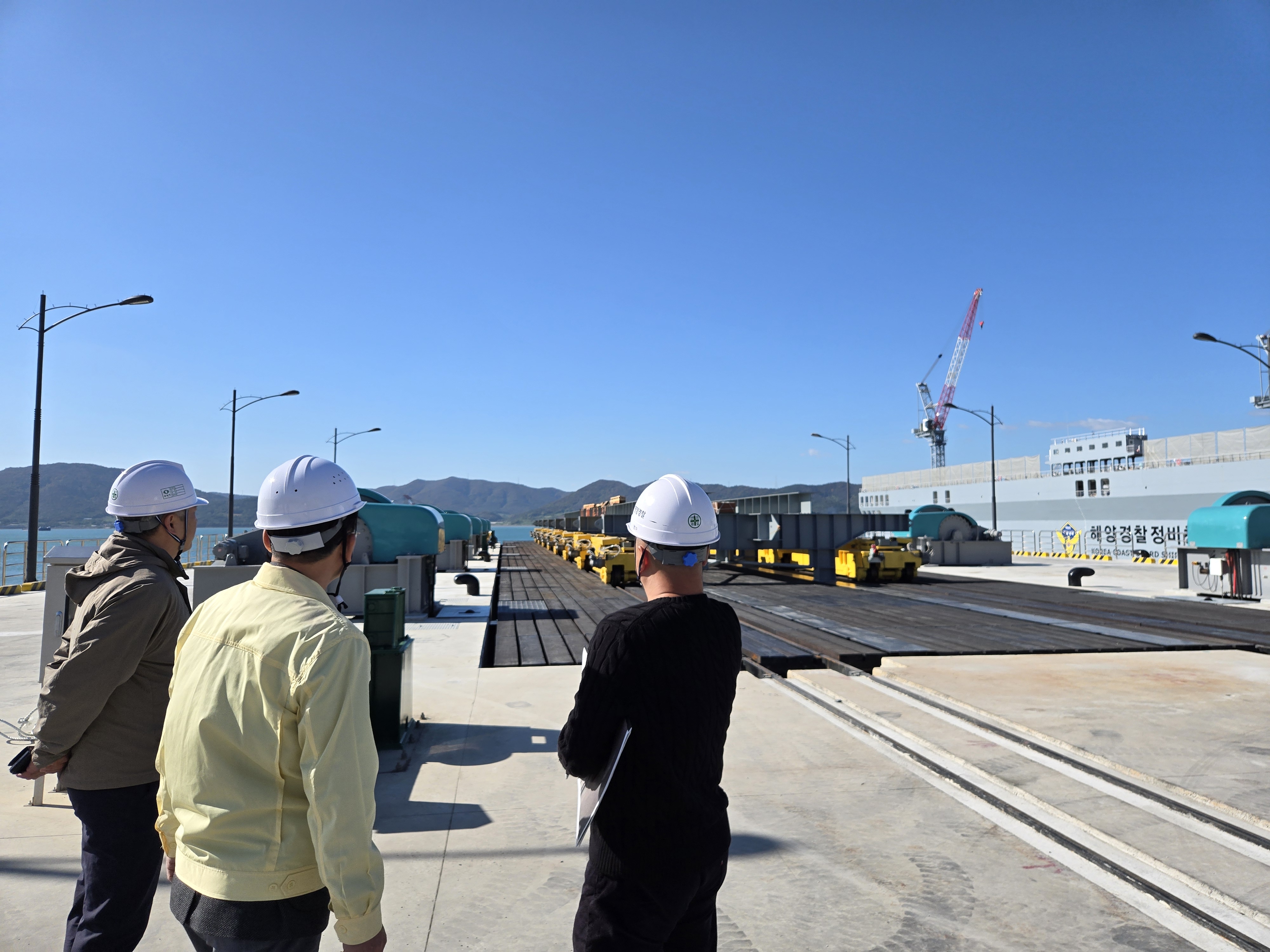 김태환 목포해수청장은 해양경찰청이 비관리청 항만 개발사업으로 시행 중인 ‘서부 정비창 신설 사업’ 현장을 찾아 현장을 점검했다. 서부 정비창은 부산 정비창(´94년부터 운영)의 시설 노후 및 수리 수용 한계초과 문제 해결과 서·남해권 및 제주권의 중·소형 함정의 원활한 수리를 위해 목포 허사도에 신설되는 정비창이다.(´25. 11. 10.) |